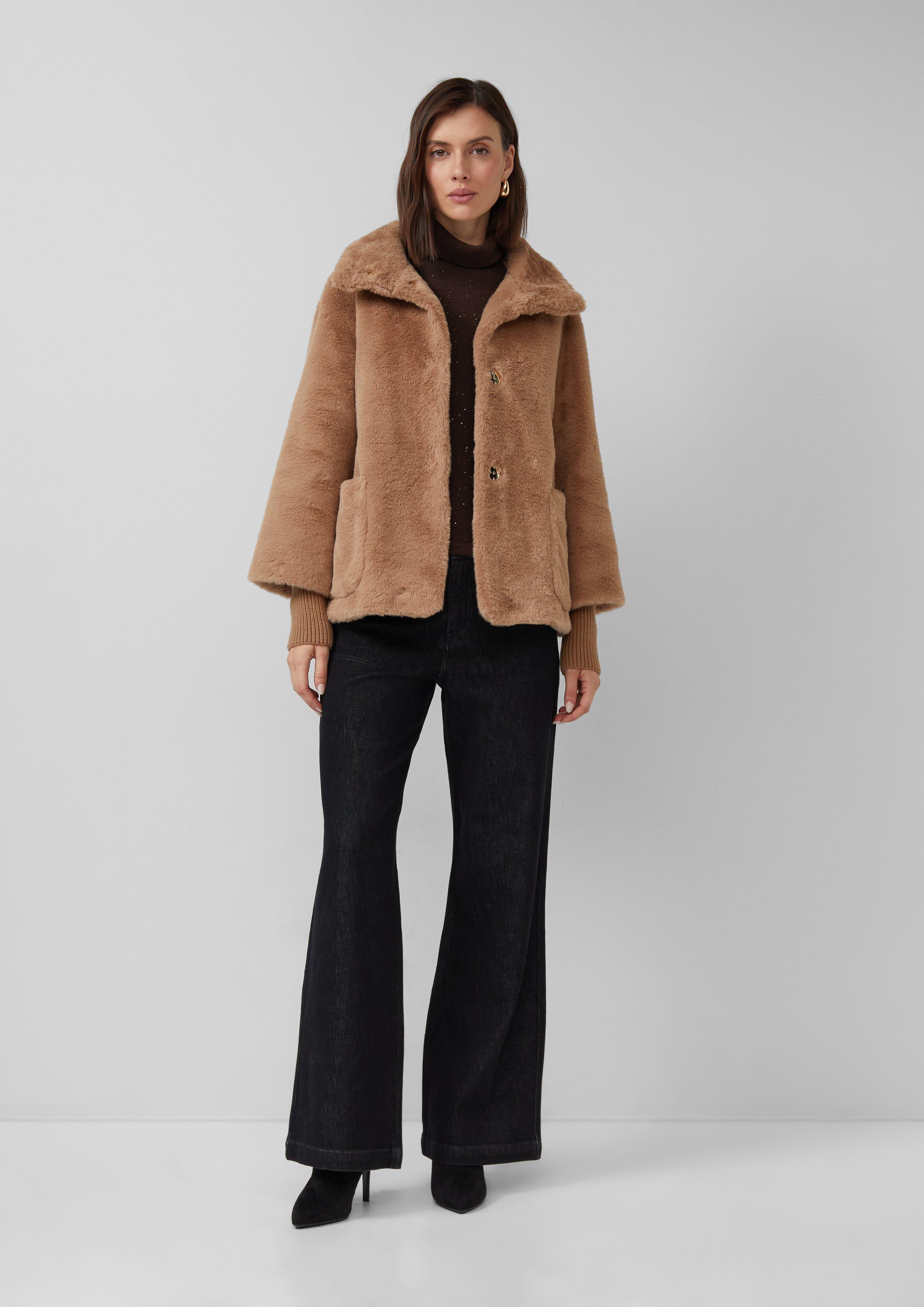 Teddy plush jacket with rib-knit cuffs