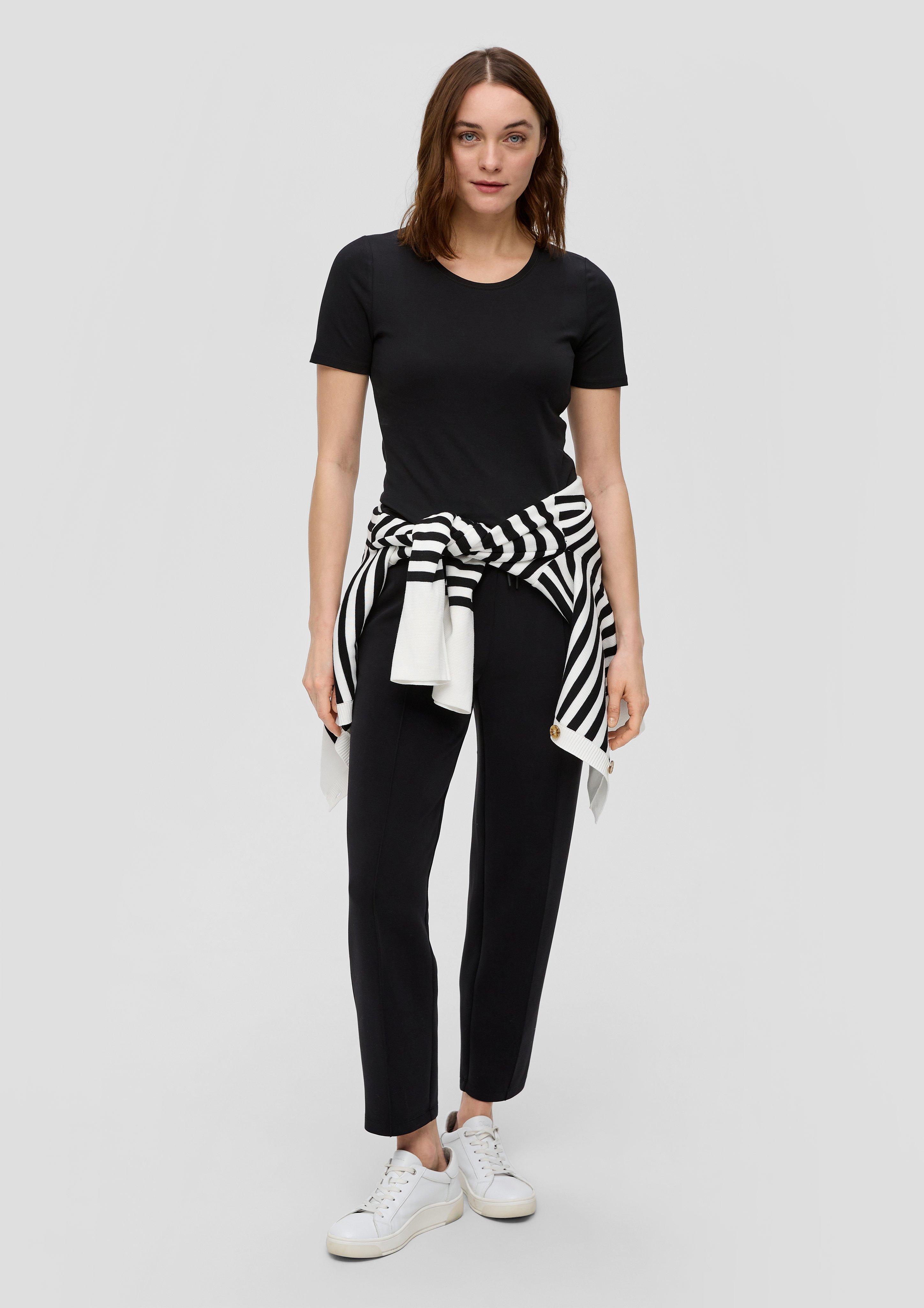 This jersey T-shirt made of 100% cotton is the perfect companion for casual everyday looks. With its round neckline and clean look, it is a timeless basic that no closet should be without. The slim fit ensures a flattering fit, while the soft fabric makes it comfortable to wear. Whether worn with a denim skirt or high-waist trousers, this T-shirt goes with any casual outfit. The ribbed neckline gives the shirt a special touch. Get this versatile must-have for every female wardrobe now!