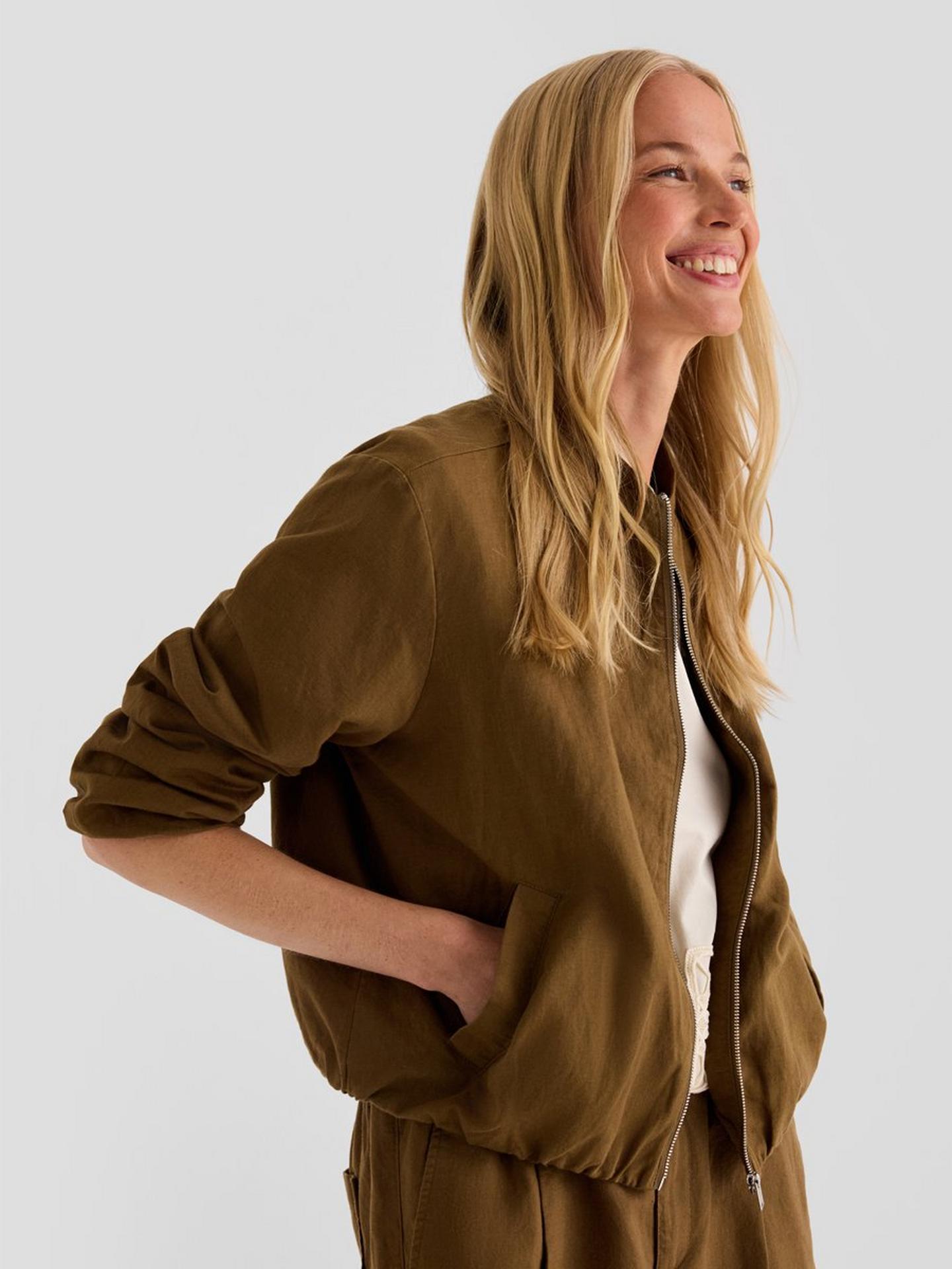 A linen bomber jacket paired with Bermuda shorts or white trousers – a set that looks casual and is easy to mix and match. As versatile as summer itself.